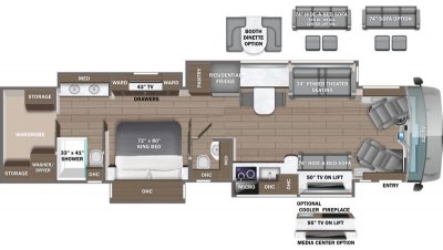 - Cargo Features: (2) power slideout basement storage trays