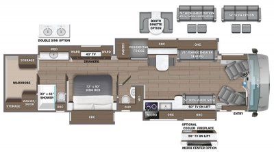 - Slideouts: Entegra Coach-exclusive ElectraGlide flush-mounted 12V slideout system