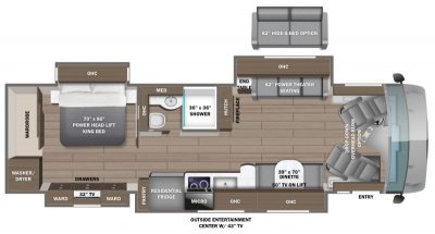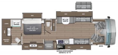 - Entertainment: Exterior 43 in. Samsung® 4K UHD Smart TV with tilt, swivel, and extend adjustment; Exterior JBL® radio and speakers with USB port and receptacle