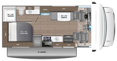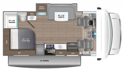 - Electric-powered entrance step with integrated house battery compartment