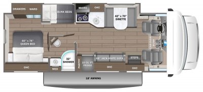 - Jayco-exclusive, easy-operation legless dinette table (22C, 22CF, 31FF)