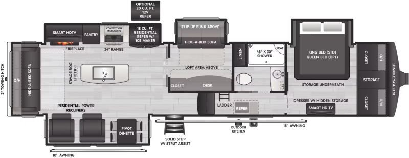 Keystone RV is the #1 manufacturer of recreational vehicles in North America. You'll find Keystone RVs available in all types and sizes of towables. From ultra light weight travel trailers that can be towed by the new fuel-efficient cross over vehicles and smaller pick up trucks to luxurious fifth wheels, you can find a a Keystone RV that's just right for you.