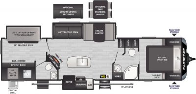 - Extra large 30" X 20" baggage doors w/ motion sensor lighting in pass-thru