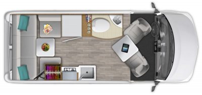 - Folding Mattress (for front cab sleeping)(Optional): Single folding mattress for sleeping across the front two captain seats (33" width x 70" length)