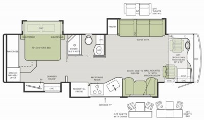 - Passenger Side Dinette - 75" Booth Dinette-Sleeper (33 FL,38 BL)