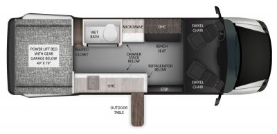 - 49” x 79” Power Lift Bed with Gear Garage Below