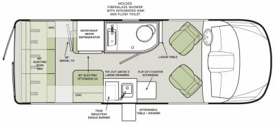 - 12V, 110V, and USB outlets in Living Area
