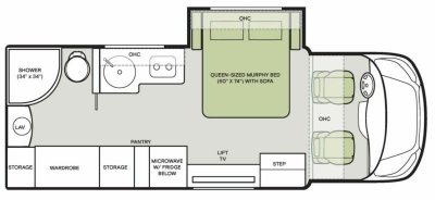 - Driver Side Queen-sized Murphy Bed (60" x 74") with Sofa