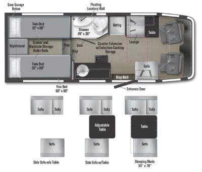 - Optional: Pop-top sleeping area w/FROLI® sleep system and 110V, USB charging ports (N/A w/luggage rack, ladder)
