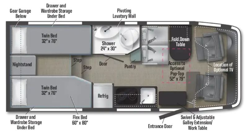 | Pop-top sleeping area | N/A |