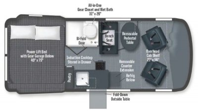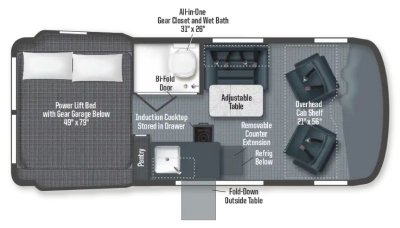 | Power lift bed and molded pockets w/zip storage below | N/A | |