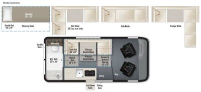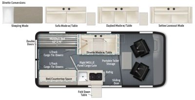 - Dinette w/two facing seats (converts to sofa/daybed and includes one 3-point seatbelt) (36A)