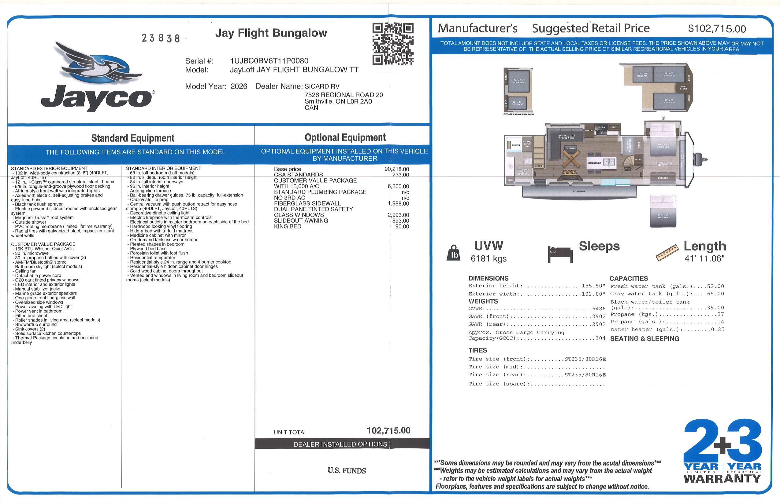 Inside this Jay Flight Bungalow JayLoft, you will find two loft sleeping areas offering plenty of additional sleeping space when needed. Included with this Jay Flight Bungalow JayLoft, you will also receive the Dual Pane Tinted Safety Glass Windows option. All Jay Flight Bungalows come with a 2 year limited warranty and a 3 year structural warranty, providing you with peace of mind against any defects.