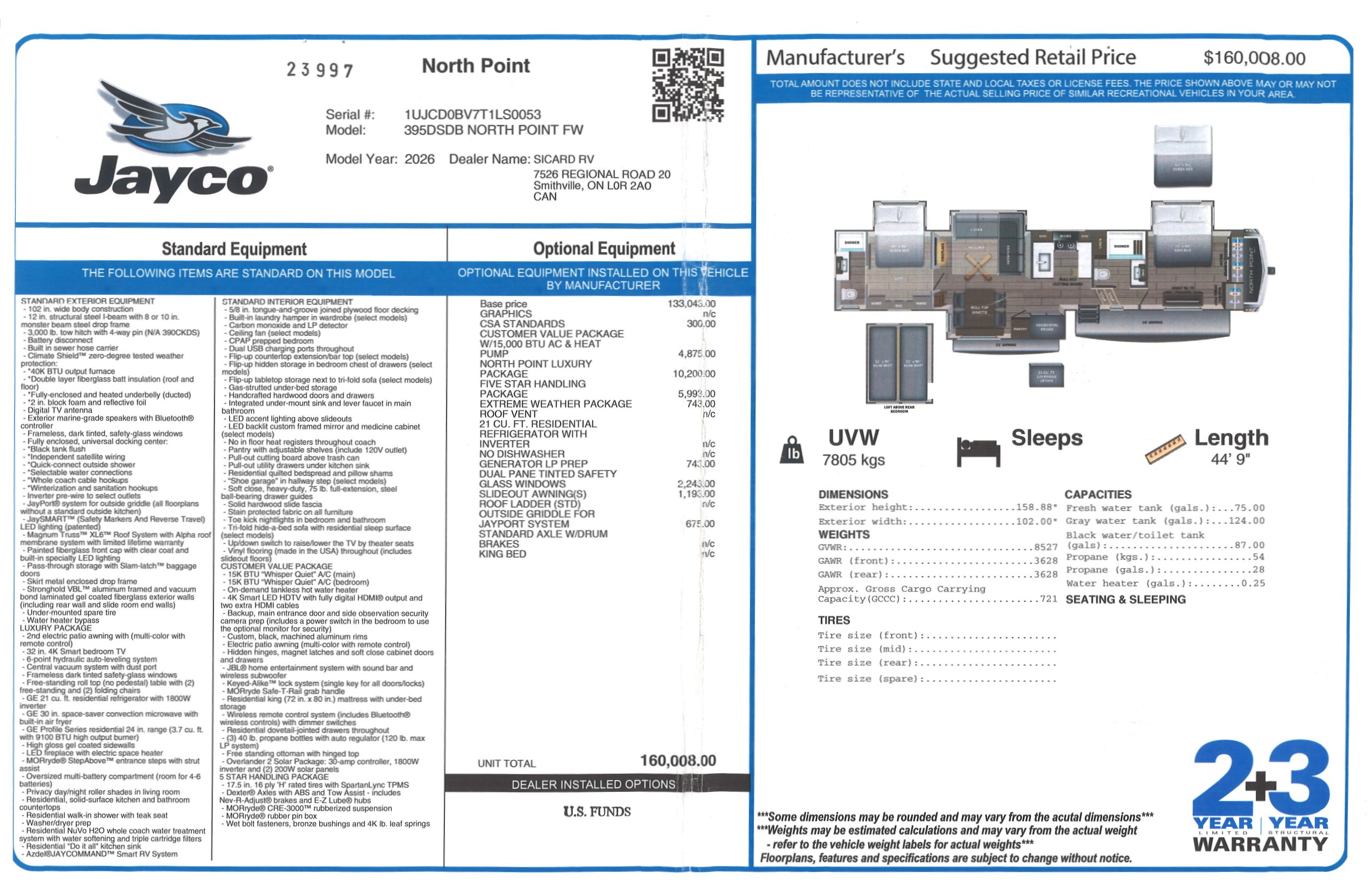 Inside this North Point 395DSBS, you will find a rear loft sleeping space above the rear bedroom providing plenty of extra sleeping space. Included with this North Point 395DSBS, you will also receive the Outside Griddle for JayPort System option. All North Points come with a 2 year limited warranty and a 3 year structural warranty, providing you with peace of mind against any defects.