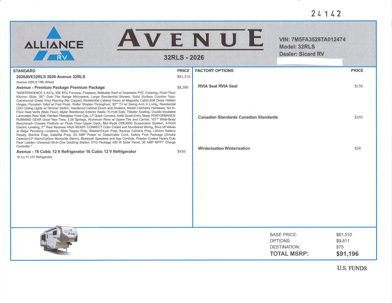 Introducing the 2026 Avenue 32RLS, from Alliance. The Avenue 32RLS is built with you in mind. This fifth wheel sleeps up to 4 people.