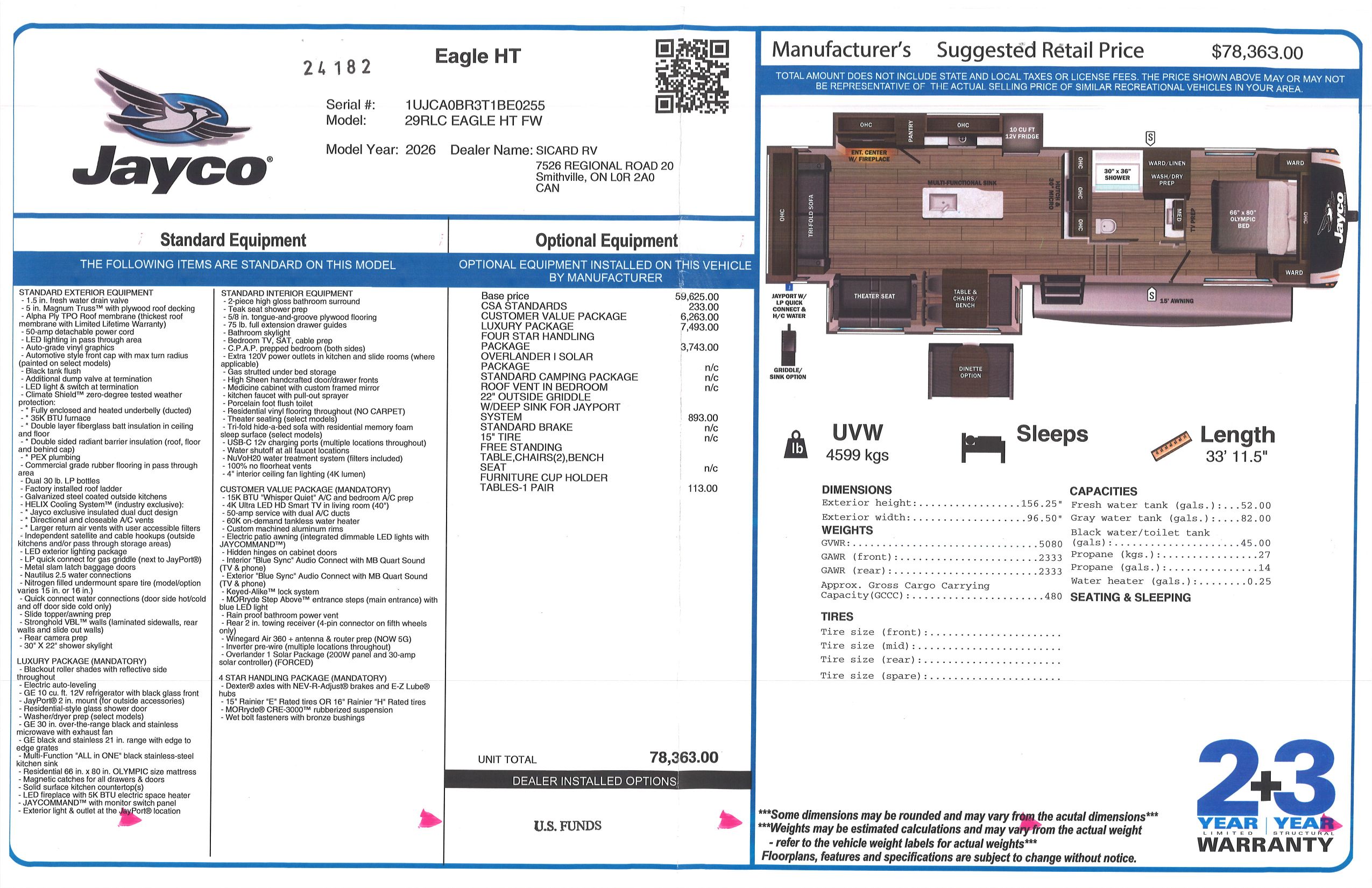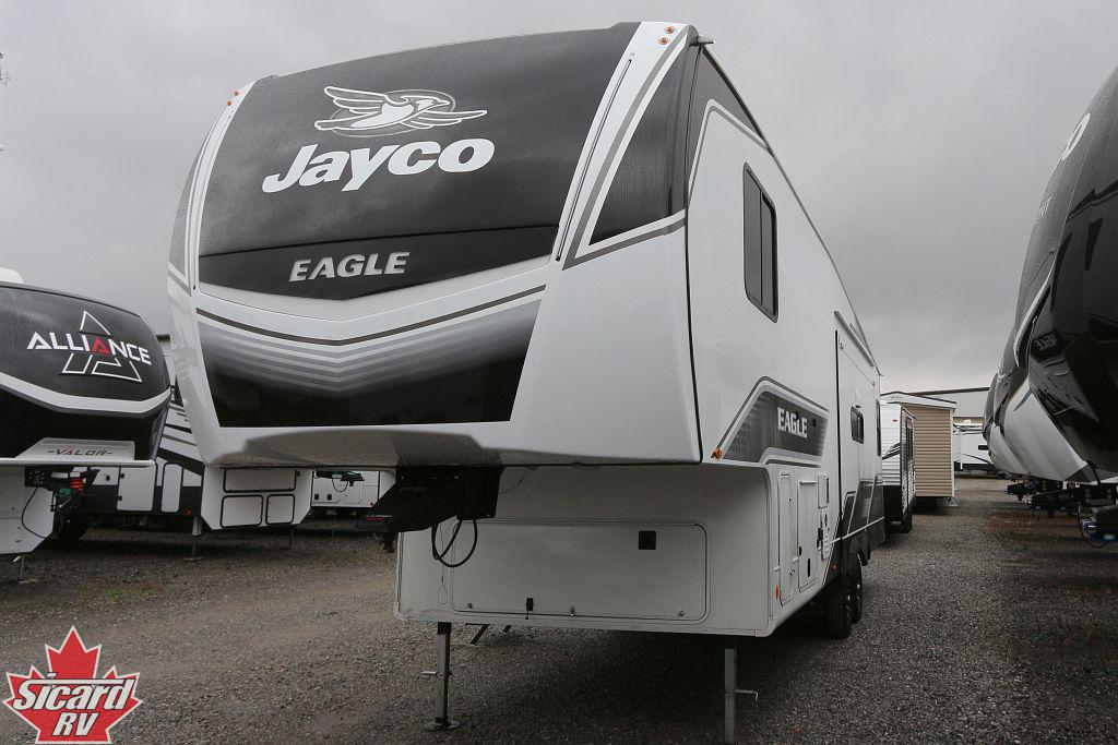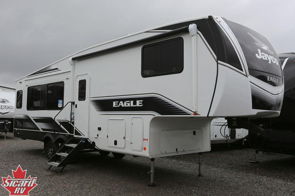 Introducing the 2026 Eagle HT 29RLC, made by Jayco. The Eagle HT 29RLC provides you with all of the comforts you need. This fifth wheel sleeps up to 4 people. Inside this Eagle HT 29RLC, you will find a tri-fold sofa that converts to another bed for an additional sleeping space when needed. Included with this Eagle HT 29RLC, you will also receive the 22 Outside Griddle w/ Deep Sink for Jayport System option. All Eagle HTs come with a 2 year limited warranty and a 3 year structural warranty, providing you with peace of mind against any defects. Embrace the RV lifestyle and unlock a world of adventure with the Eagle HT from Sicard RV.