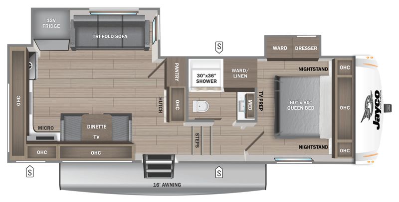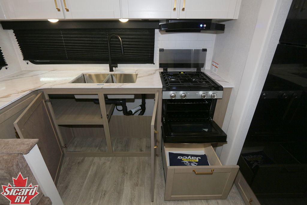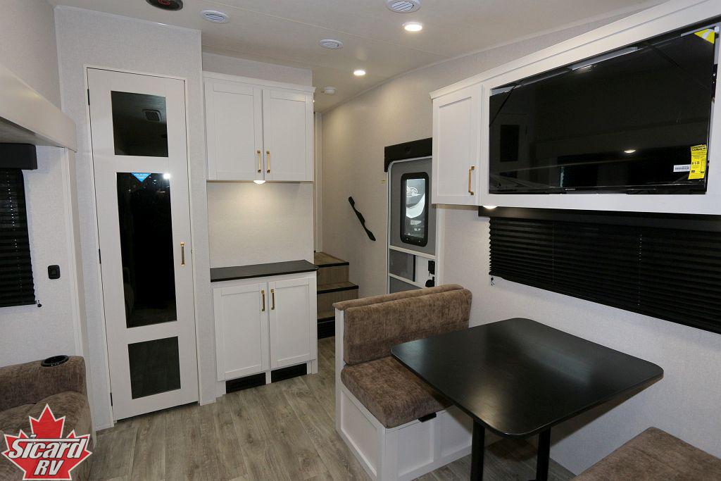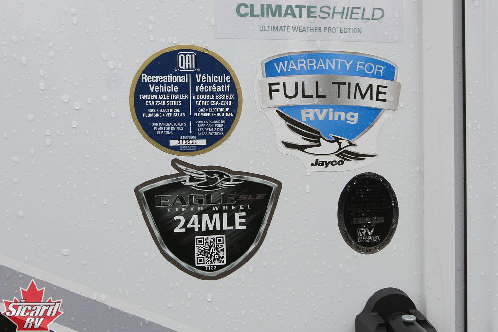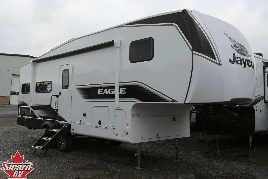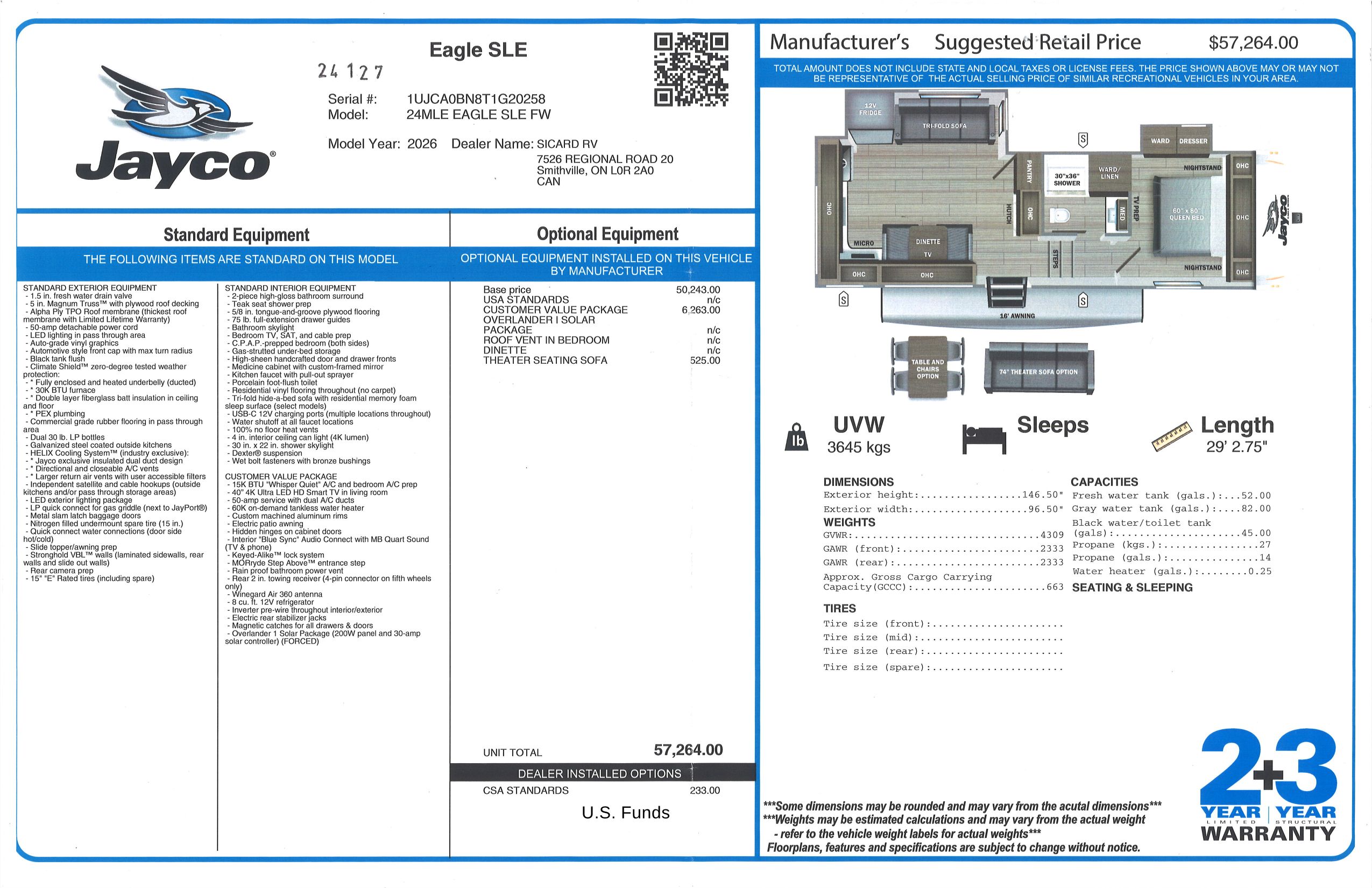 Introducing the 2026 Eagle SLE 24MLE, made by Jayco. The Eagle SLE 24MLE is a great way to escape the ordinary, relax, and enjoy family and friends. This fifth wheel sleeps up to 5 people. Inside this Eagle SLE 24MLE, you will find a four seat bench dinette that converts into an additional sleeping space when required. Included with this Eagle SLE 24MLE, you will also receive the Theater Seat Sofa option. All Eagles come with a 2 year limited warranty and a 3 year structural warranty, providing you with peace of mind against any defects. Embrace the RV lifestyle and unlock a world of adventure with the Eagle SLE 24MLE from Sicard RV.