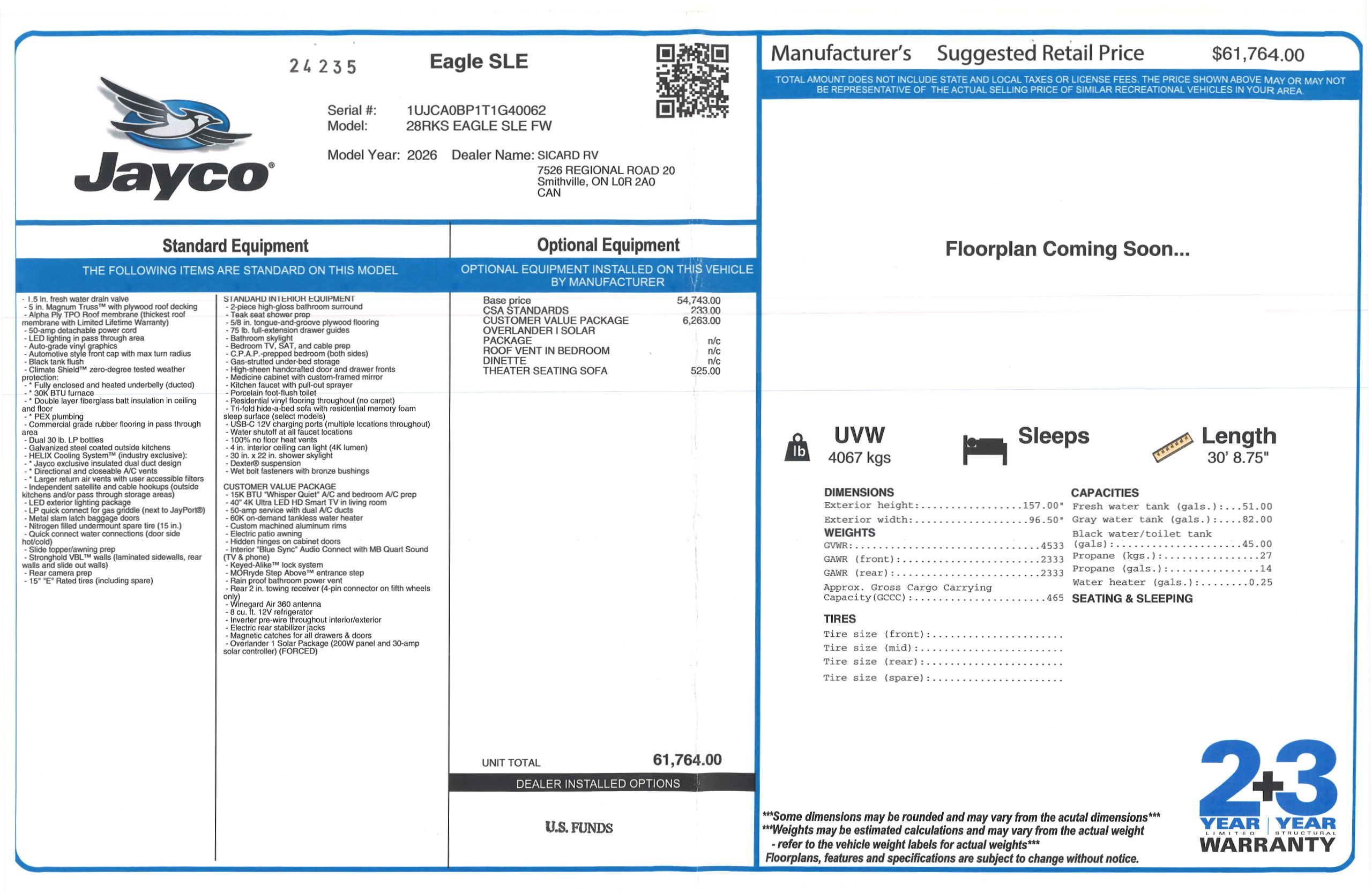 Embrace the RV lifestyle and unlock a world of adventure with the Eagle SLE 28RKS from Sicard RV.