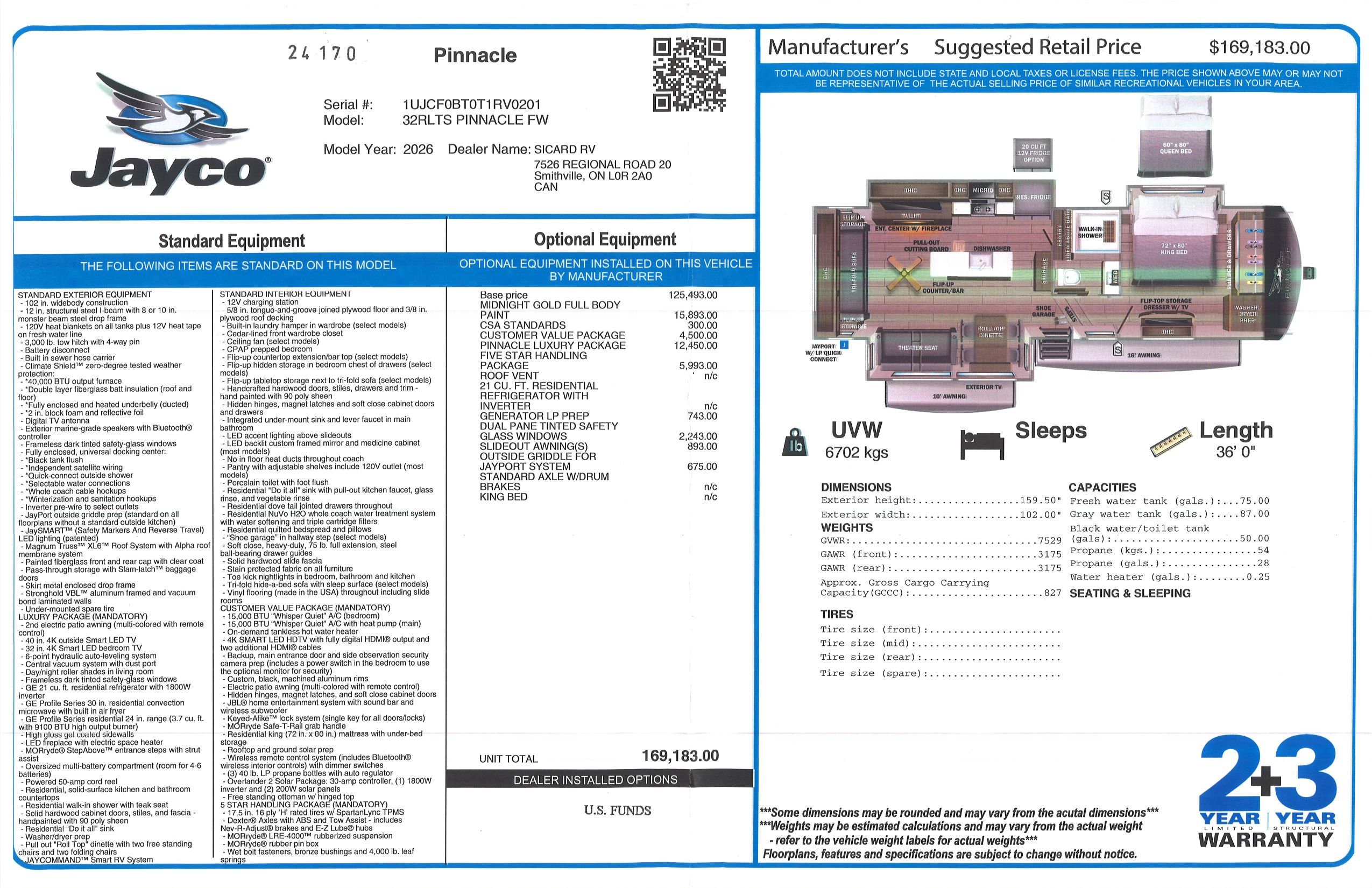 Inside this Pinnacle 32RLTS, you will find a tri-fold sofa that converts to another bed for an additional sleeping space when needed. Included with this Pinnacle 32RLTS, you will also receive the Outside Griddle for JayPort System option. All Pinnacles come with a 2 year limited warranty and a 3 year structural warranty, providing you with peace of mind against any defects.