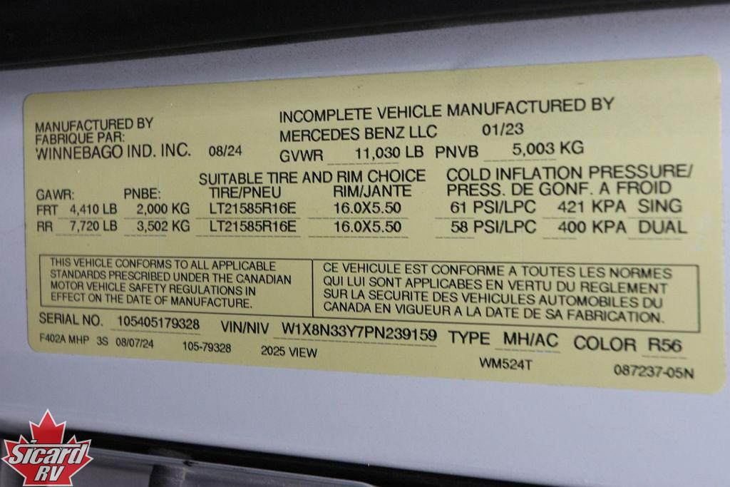 The View 24T rides on a Mercedes-Benz Sprinter chassis, powered by a 2.0L turbo-diesel engine with a 9-speed automatic transmission w/overdrive.