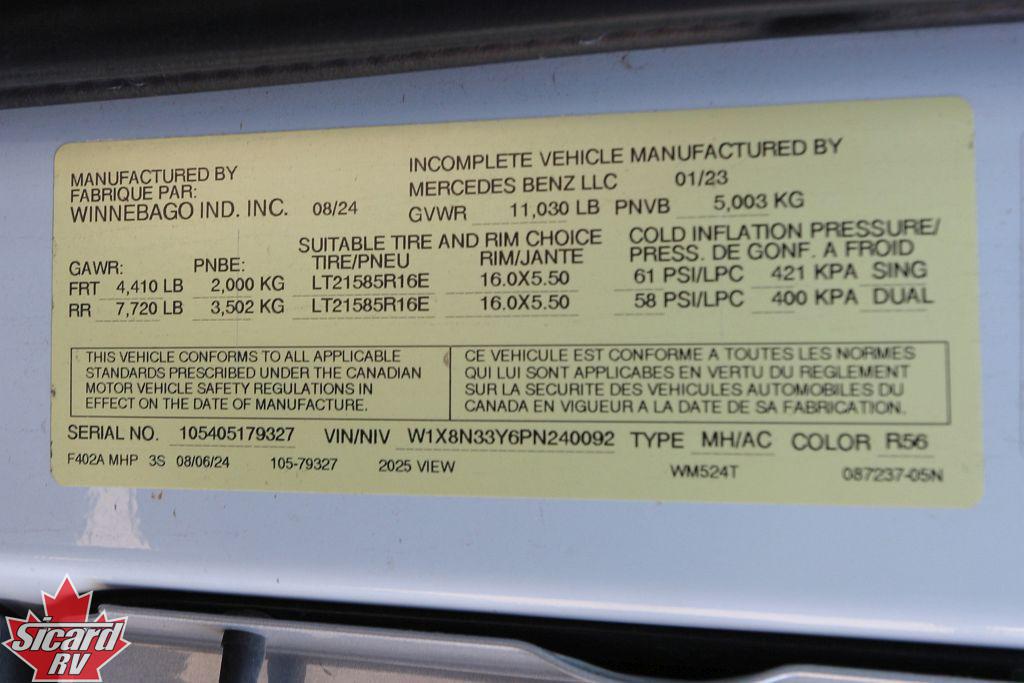 The View 24T rides on a Mercedes-Benz Sprinter chassis, powered by a 2.0L turbo-diesel engine with a 9-speed automatic transmission w/overdrive.