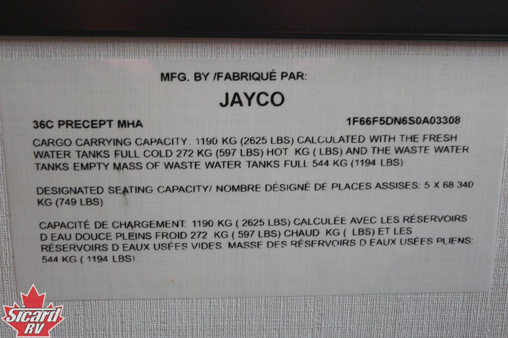 The Precept 36C rides on a Ford F53 chassis, powered by a 7.3L V-8 335HP engine with a 6-speed automatic transmission with overdrive and tow haul mode.