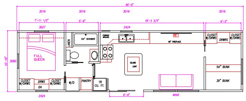 - 2ND BEDROOM W/39 & 54" BUNKS