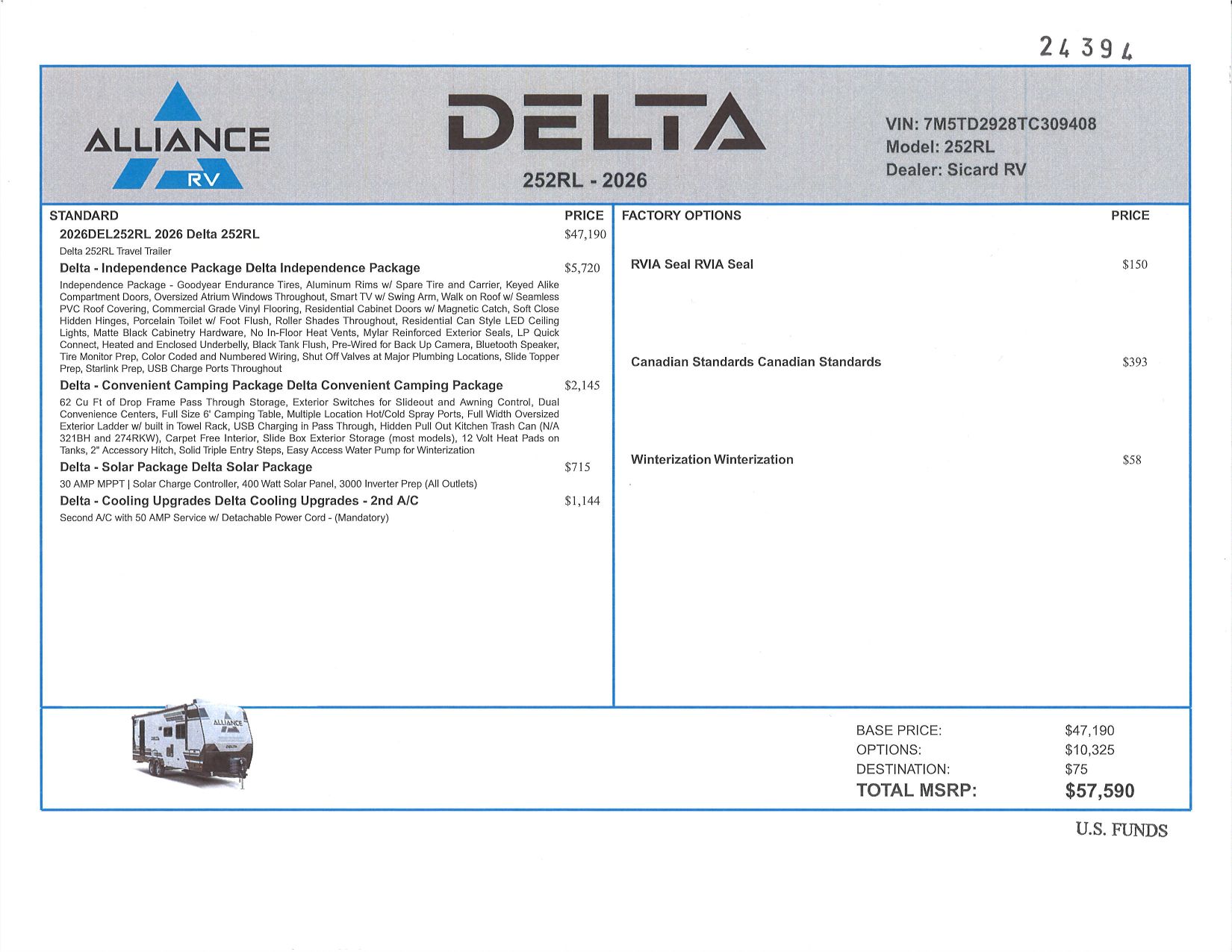 Embrace the RV lifestyle and unlock a world of adventure with the Delta 252RL from Sicard RV.