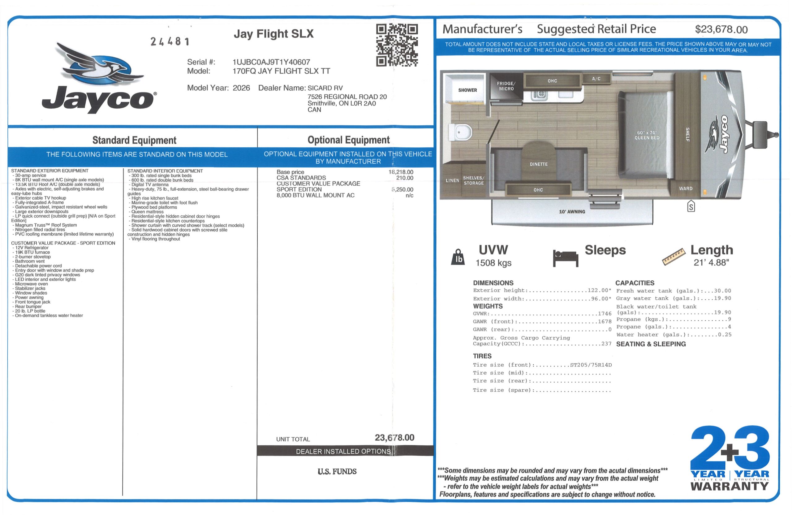 2026 JAYCO JAY FLIGHT SLX 170FQ