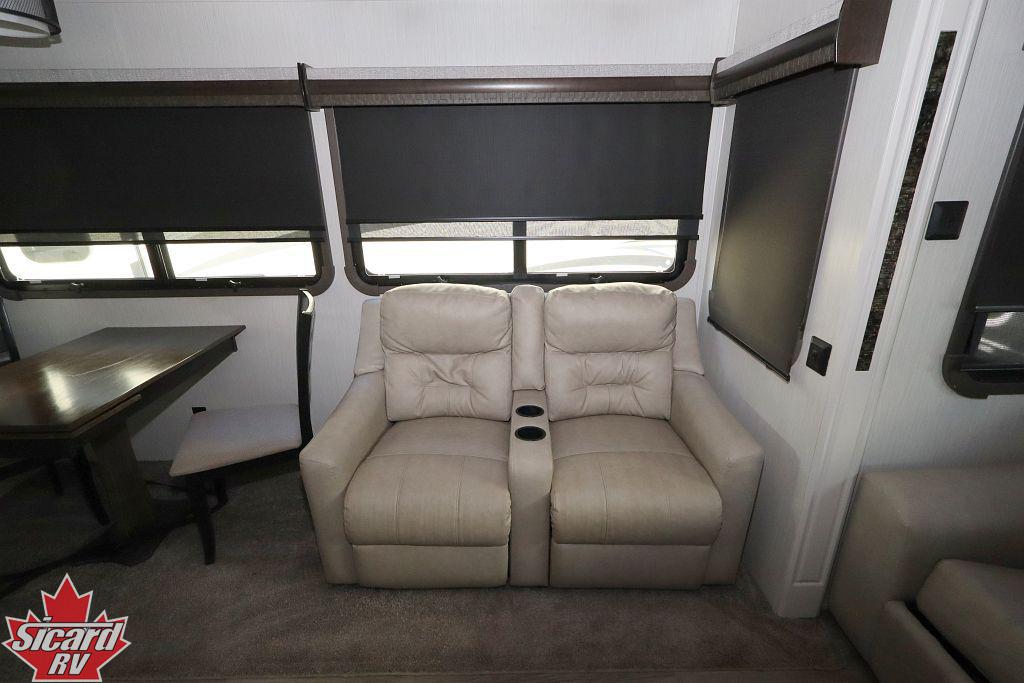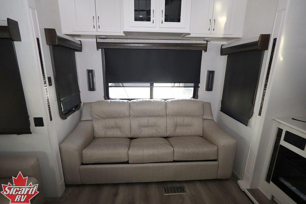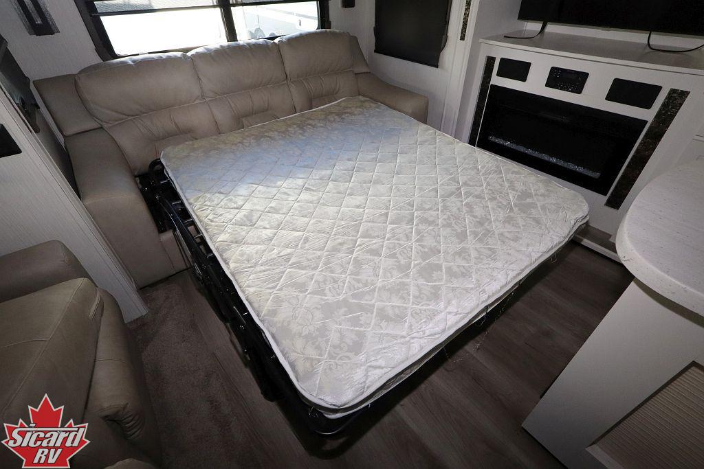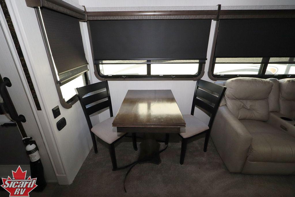 Inside the Cedar Creek Hathaway 34IK, you will find a pull-out sofa bed providing additional sleeping space when required, as well as a table and chairs dinette.