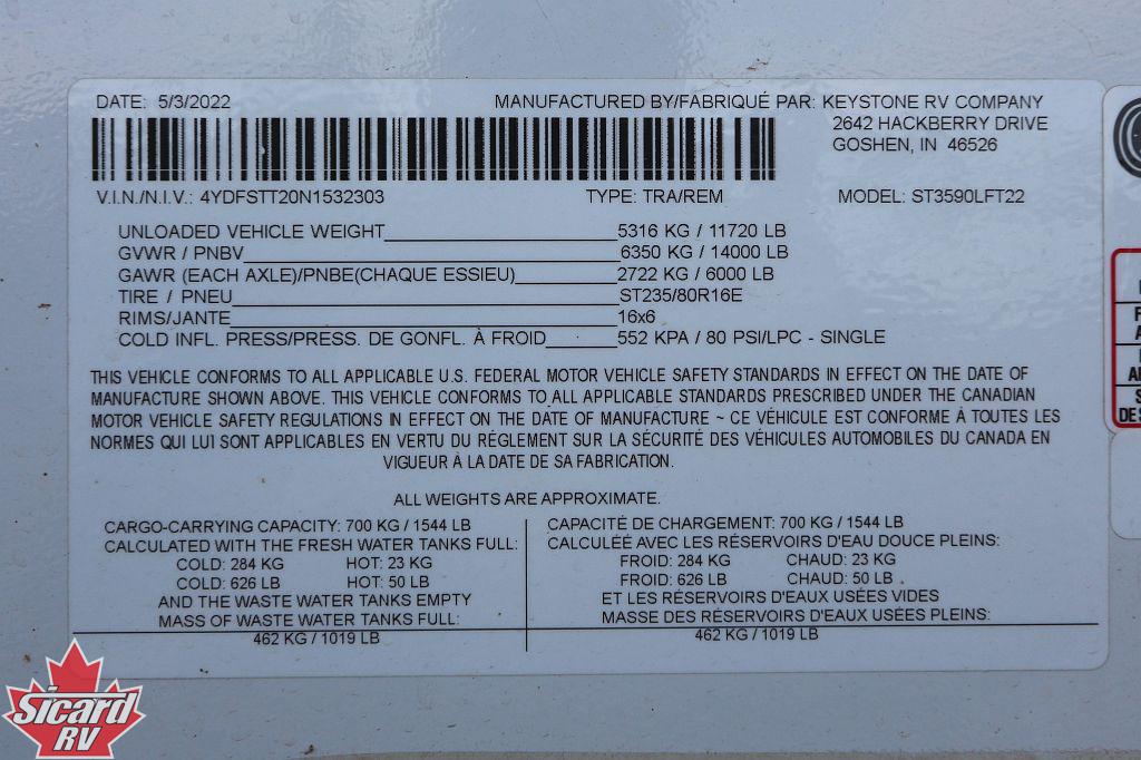 2022 KEYSTONE SPRINTER LIMITED 3590LFT