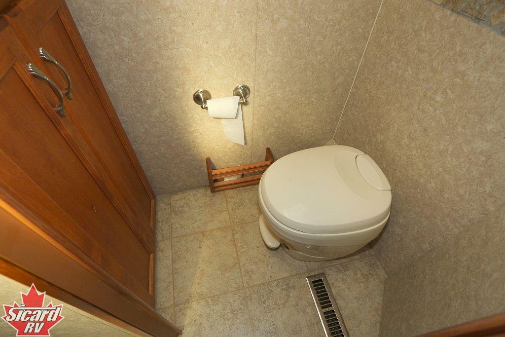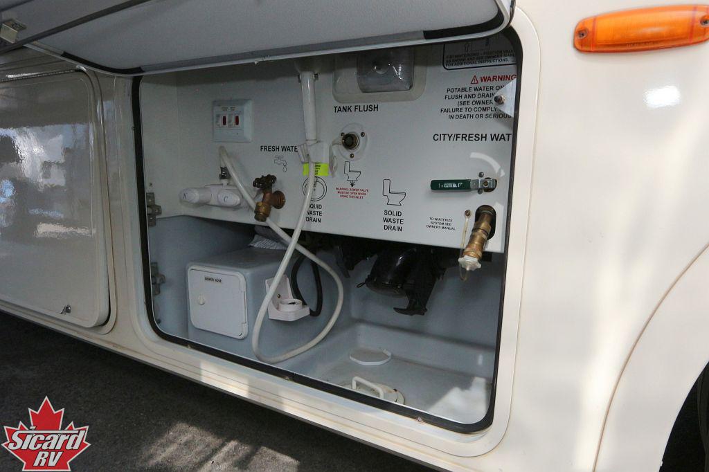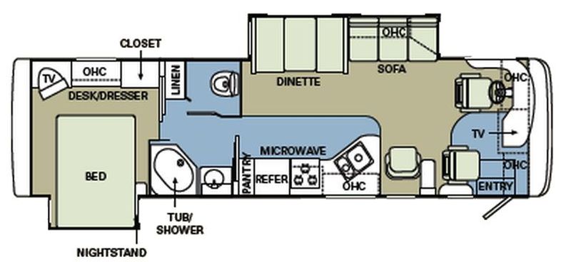 The Vacationer 34PDD rides on a Roadmaster chassis, powered by a 300HP diesel engine with a 6 speed Allison transmission.