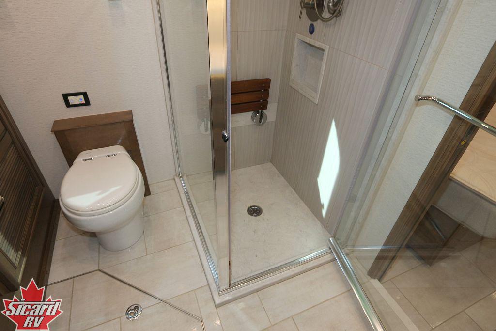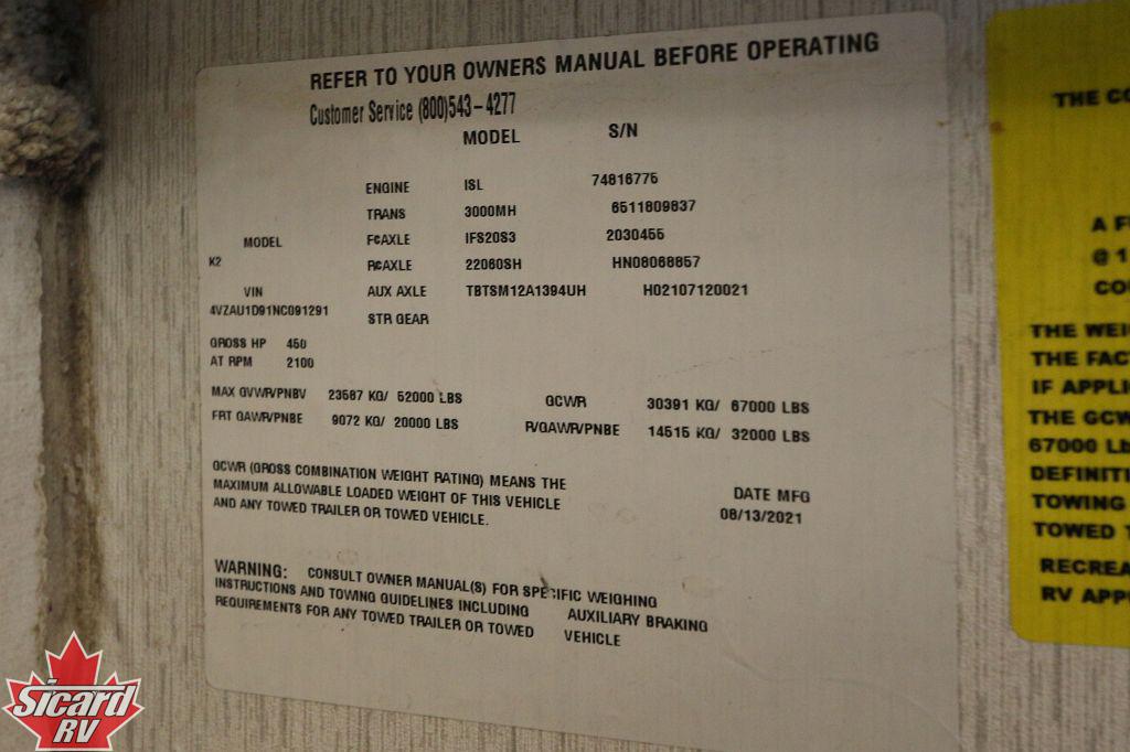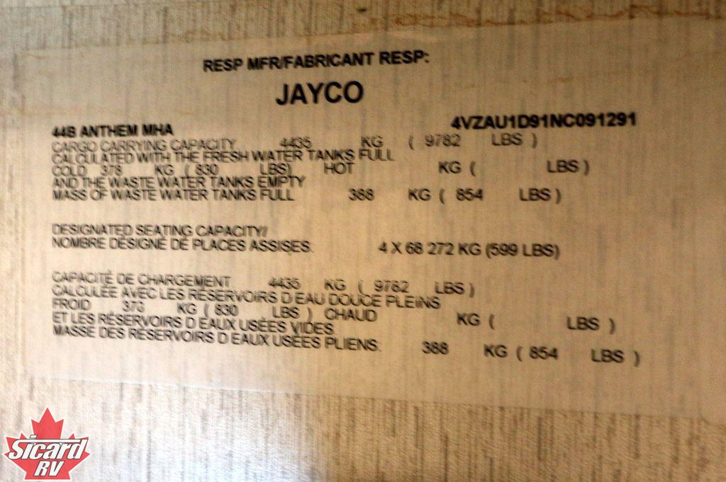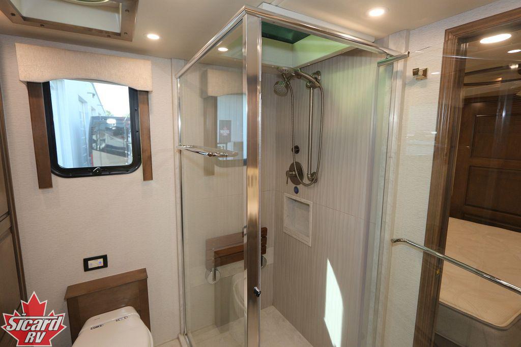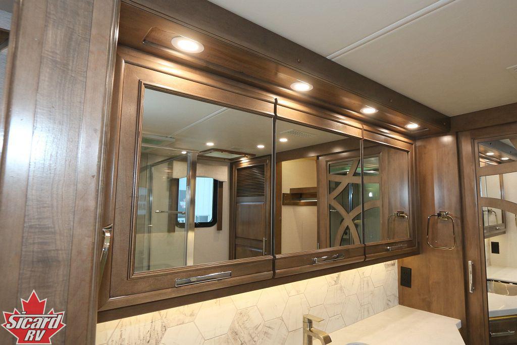 The Anthem 44B rides on a Freightliner chassis, powered by a 450HP Cummins diesel engine with a 6 speed Allison transmission.