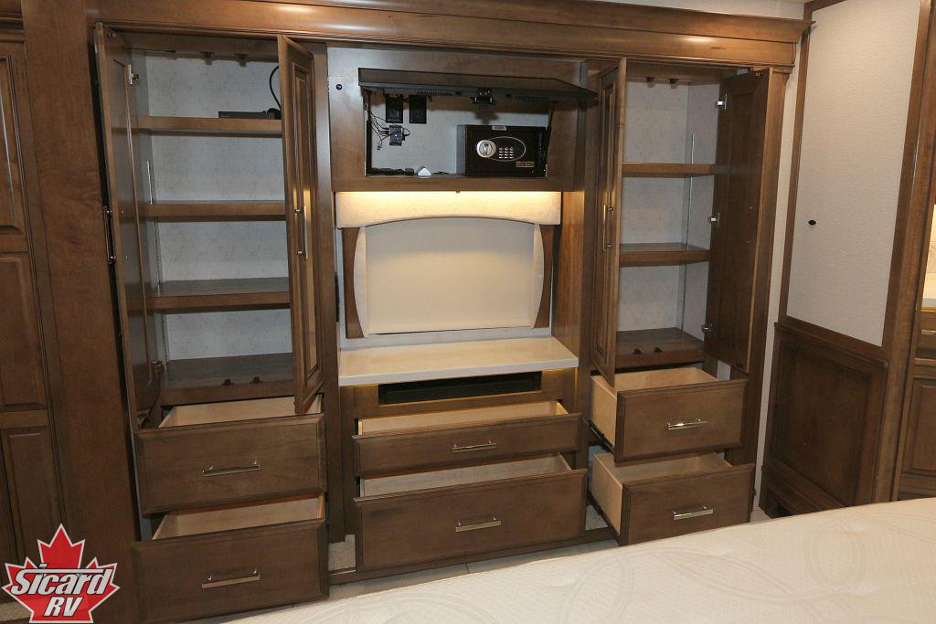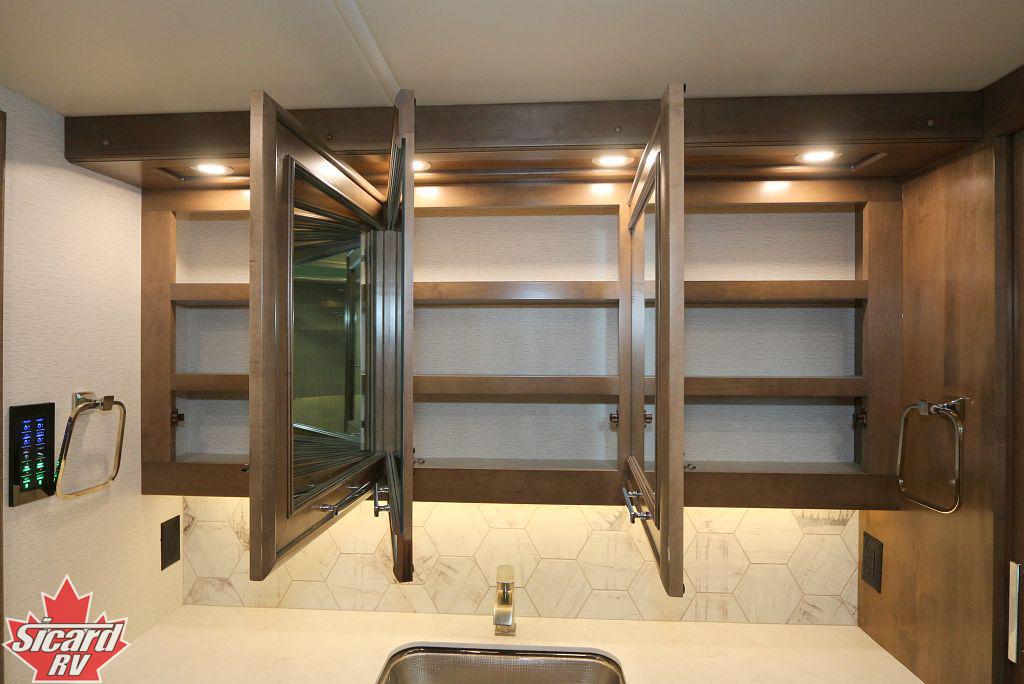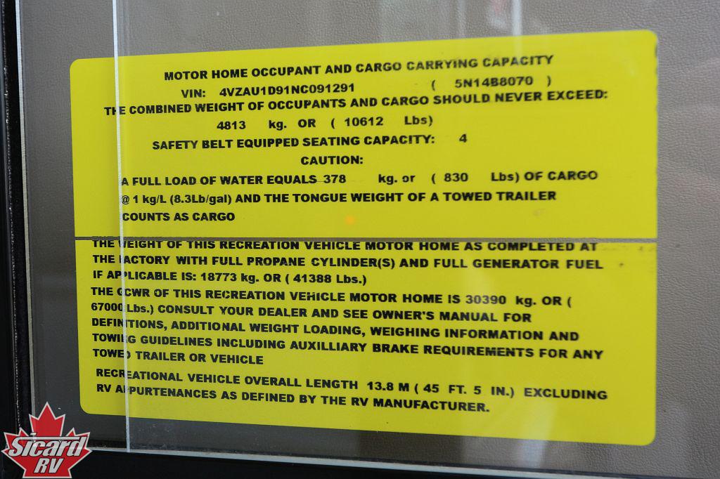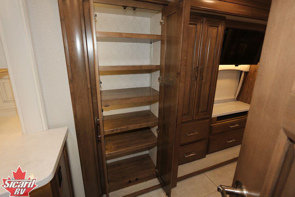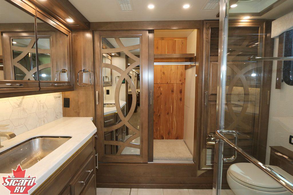 The Anthem 44B rides on a Freightliner chassis, powered by a 450HP Cummins diesel engine with a 6 speed Allison transmission.