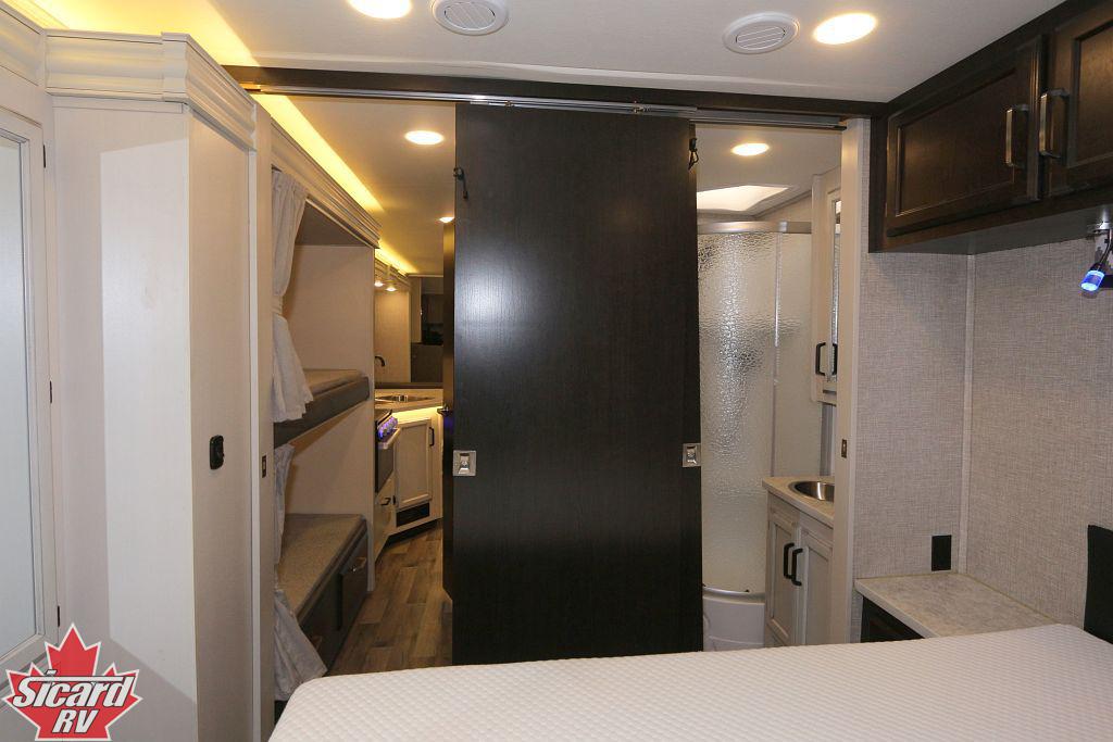 Inside the Redhawk 31F, you will find bunk beds, a four seat bench dinette that converts into a bed and a jack-knife sofa.