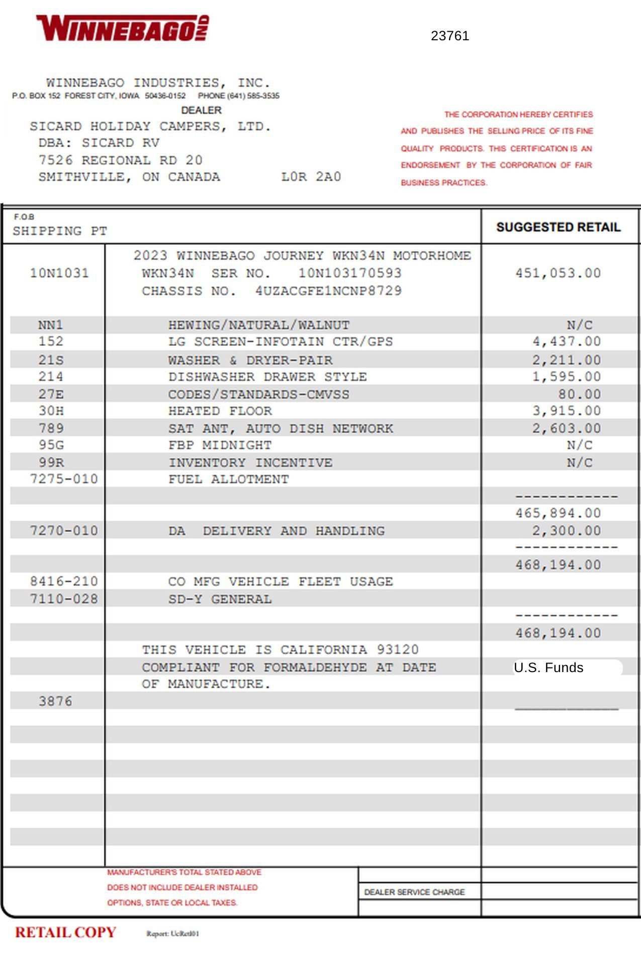 - SPECIAL PURCHASE FROM FACTORY. NO FACTORY OR CHASSIS WARRANTY. UNIT HAS NEVER BEEN RETAILED TO A CUSTOMER.