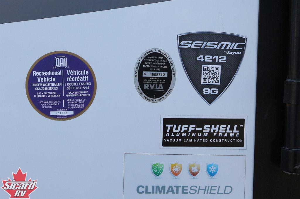 Introducing the 2017 Seismic 4212, from Jayco. The Seismic 4212 has space for your toys and all the gear that goes with them. This toy hauler travel trailer sleeps up to 8 people.