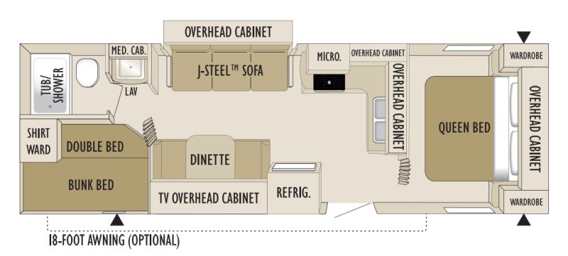 Inside the Autumn Ridge 297BHS, you will find a four seat bench dinette that converts into a bed providing additional sleeping space when required, as well as bunk beds.