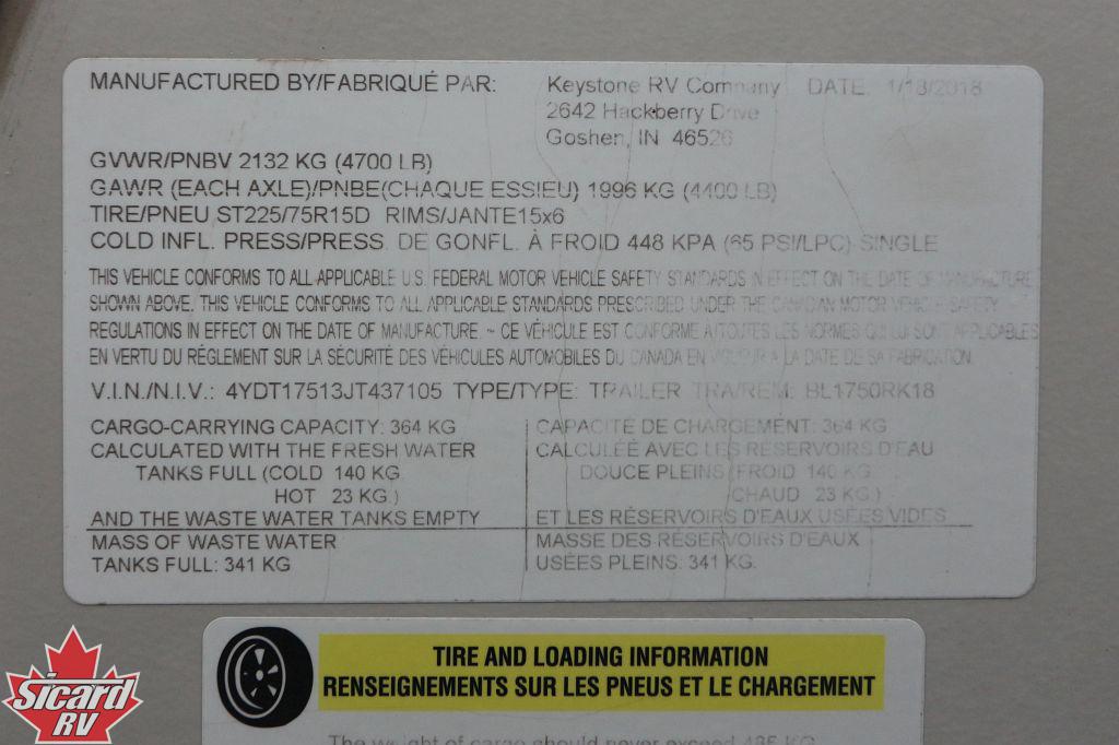 2018 KEYSTONE BULLET CROSSFIRE 1750RK